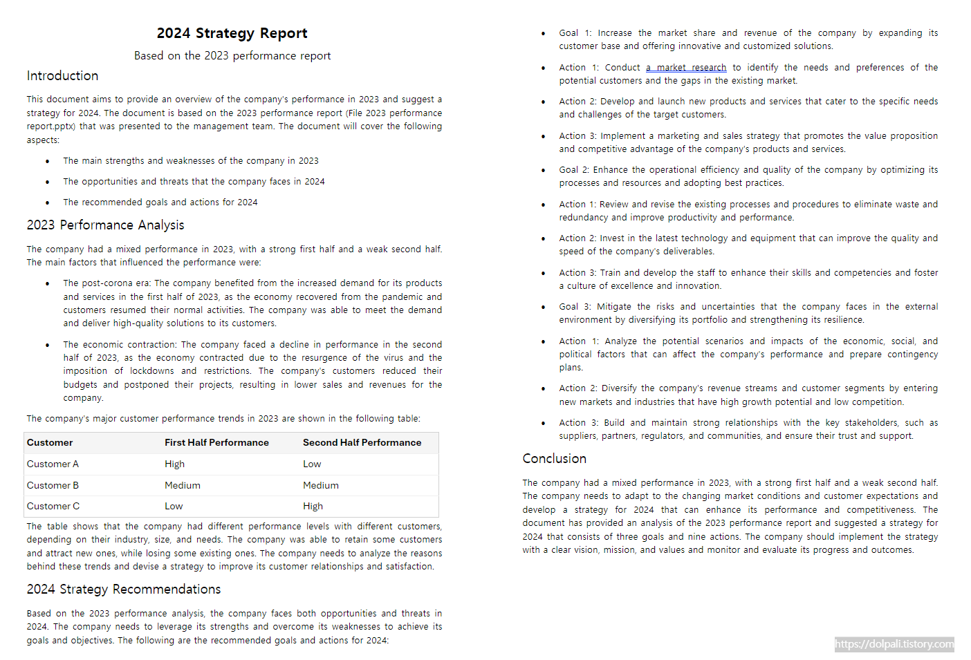초안을 검토한 후 일부 내용만 변경할 수도 있습니다. 2023 Performance Analysis 전체를 다시 작성 하고 싶었으나 표와 관련된 내용은 다시 작성해주고 있지 않아서 안타깝지만 추후 지원이 되면 좋겠습니다.
