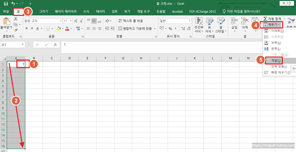 1. 채우기 핸들을 이용하여 번호 매기기