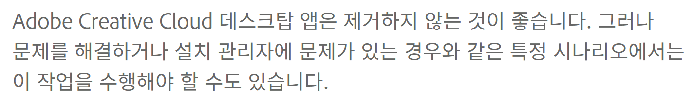 별 이상한 이유를 대며 삭제가 안된다고 나옵니다. Creative Cloud를 제거할 수 없는 이유가 Creative Cloud에서 필요하기 때문이라니 이해가 되지 않습니다.